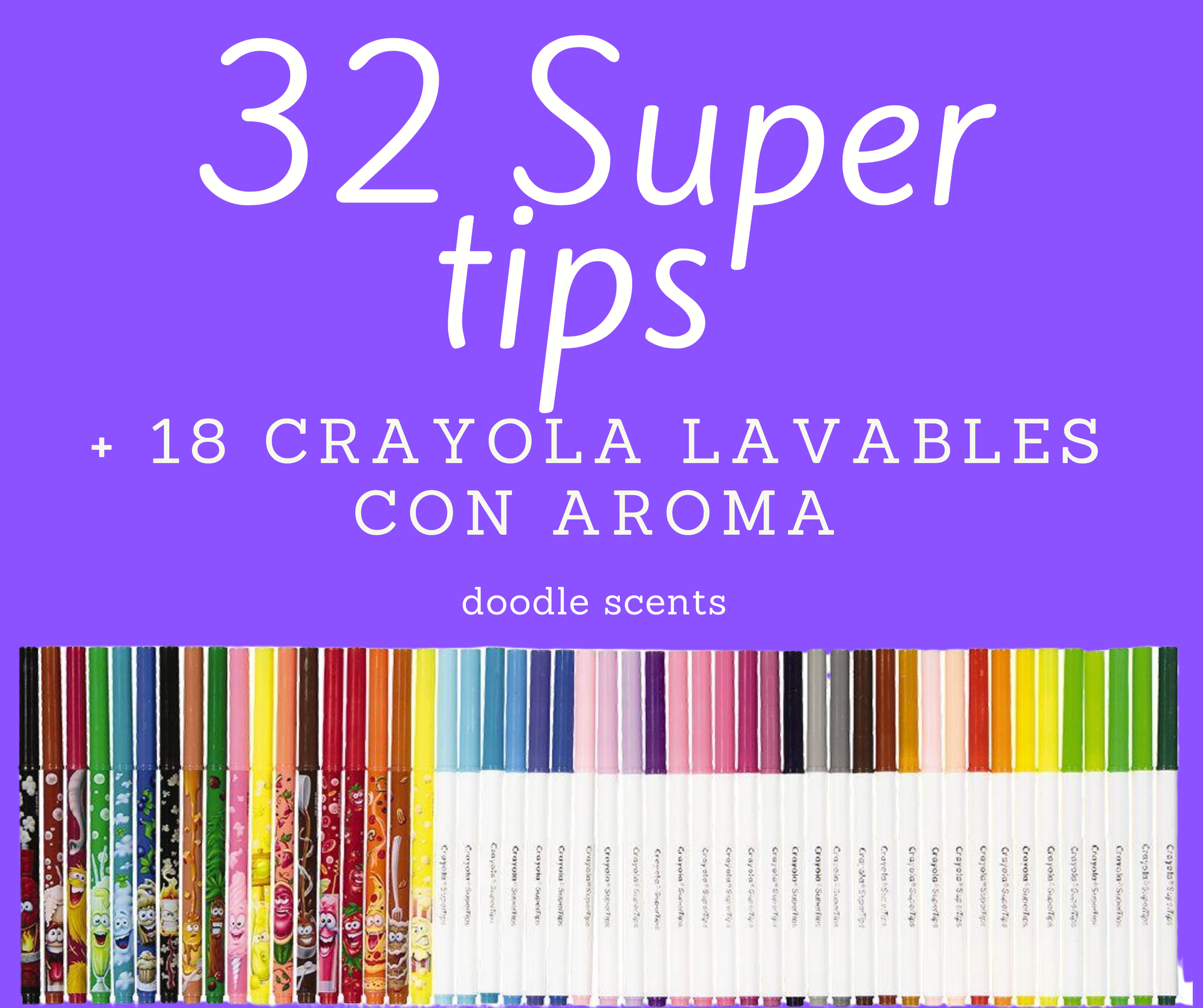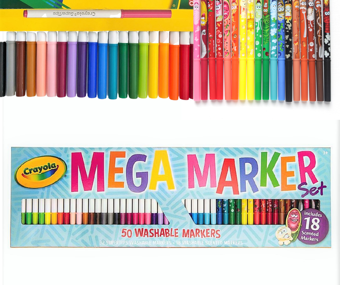 Mega Marker de Crayola es un set combinado con lo mejor de las dos colecciones: 18 Doodle Scents (Aromas) + 32 Super Tips Lavables. 50 piezas en una maravillosa caja.